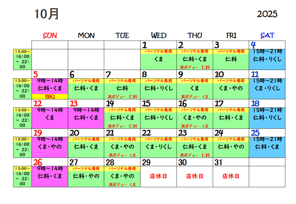 体験・パーソナルは予約制となります。ベーシック・美ボディーコースは予約なしです